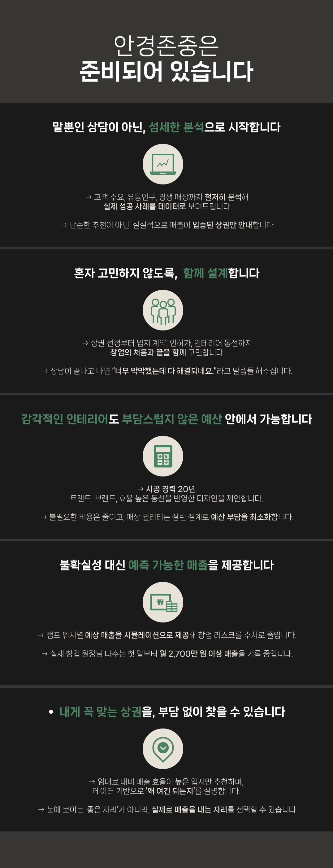 미리 분석해둔 상권, 맞춤 전략까지 제대로 도와드리겠습니다.