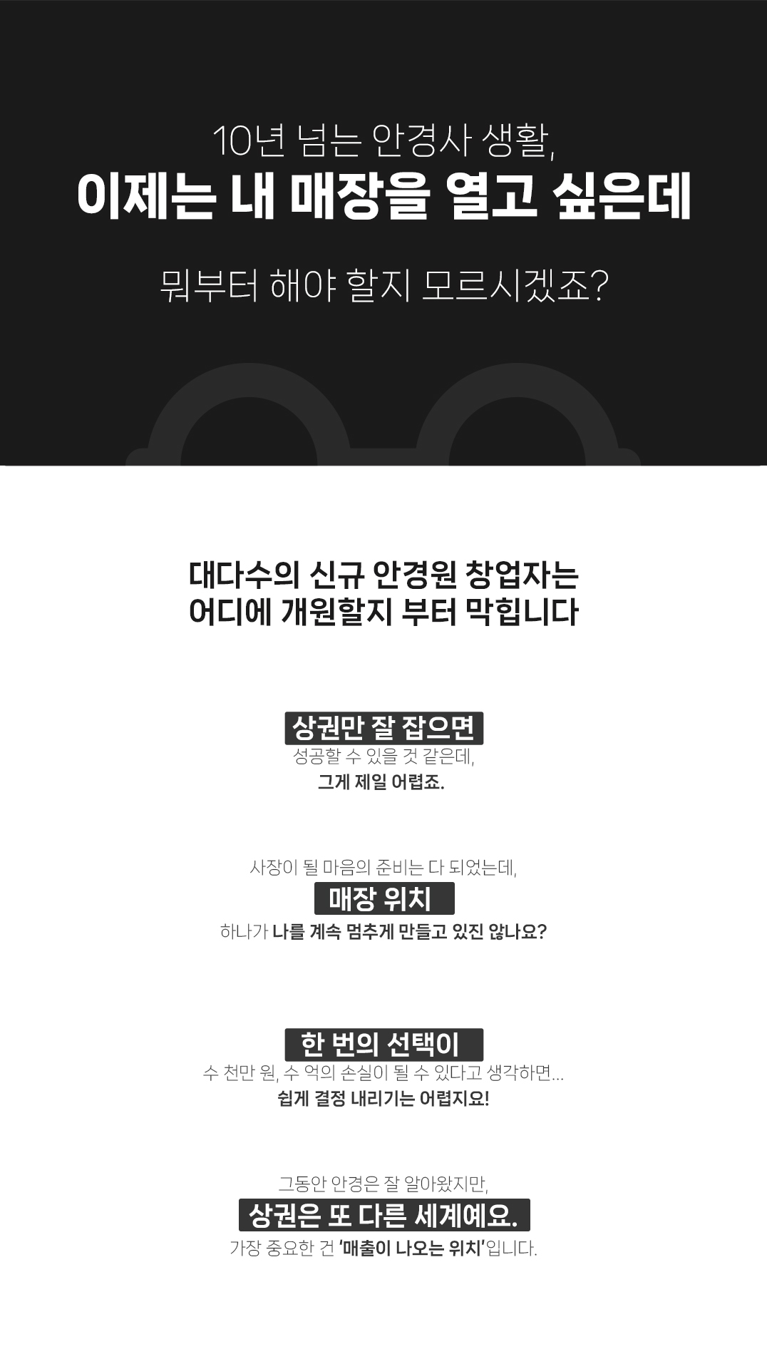 저희는 안경을 파는 본사가 아니라, 점주님과 함께 브랜드를 키워가는 동반자입니다.